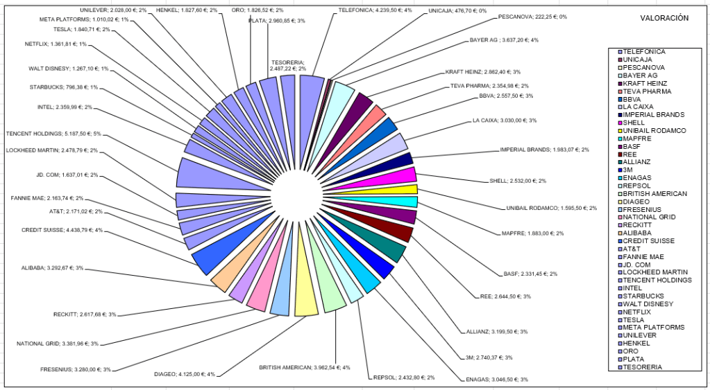 Nuestra cartera de Acciones Valoración y Pesos Relativos.